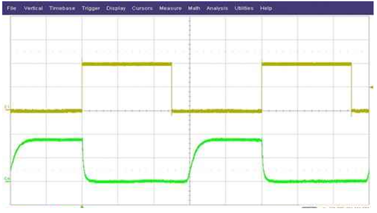 通過軟啟動(dòng)電容器C5的短路來快速打開/關(guān)閉轉(zhuǎn)換器是調(diào)節(jié)LED亮度的簡(jiǎn)便方法。圖2顯示了PWM輸入信號(hào)和實(shí)際LED電流。這種PWM調(diào)光方法效率更高,因?yàn)楫?dāng)SS引腳短路時(shí),轉(zhuǎn)換器將關(guān)閉并且消耗很少的功率。但是,該方法也相對(duì)較慢,因?yàn)檗D(zhuǎn)換器每次接通時(shí)必須以受控方式逐漸增加輸出電流,從而在輸出電流上升之前產(chǎn)生非線性的有限死區(qū)時(shí)間。。同時(shí),這也將接通時(shí)間的最小負(fù)載周期降低到10%-20%。在不需要高速和100%PWM調(diào)節(jié)的某些LED應(yīng)用中,這種方法可能就足夠了。